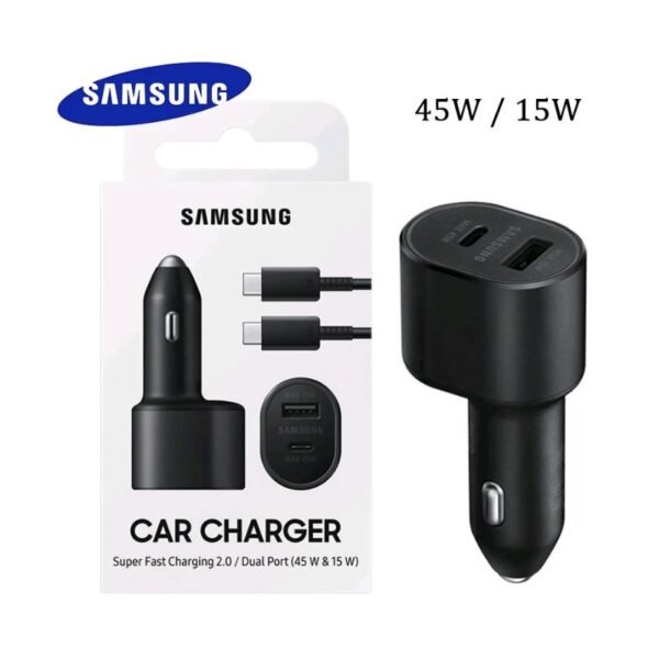 Este cargador para vehículo incluye la cigarrera y un cable tipo C, es de carga super rápida de 45w, además trae dos entradas de carga una tipo usb y la otra tipo C, cada entrada tiene una salida de 15w y 45w respectivamente, cuenta con 15 días de garantía por cualquier desperfecto de fabrica.