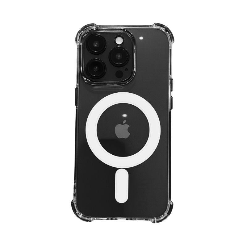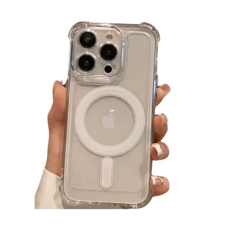 Descubre la funda con MagSafe que transforma la forma en que proteges y utilizas tu smartphone. Este estuche esta fabricado con material acrílico antigolpes, tiene las esquinas resaltadas para ofrecer una mejor protección al momento de una caída, este protector ofrece una combinación perfecta de resistencia y estilo. No solo resguarda tu IPhone de caídas y golpes, sino que también permite que se luzca en su diseño y color original, no incluye protección para la pantalla.