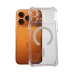 Descubre la funda con MagSafe que transforma la forma en que proteges y utilizas tu smartphone. Este estuche esta fabricado con material acrílico antigolpes, tiene las esquinas resaltadas para ofrecer una mejor protección al momento de una caída, este protector ofrece una combinación perfecta de resistencia y estilo. No solo resguarda tu IPhone de caídas y golpes, sino que también permite que se luzca en su diseño y color original, no incluye protección para la pantalla.